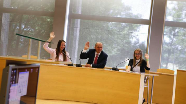Rano z gimnazjalistami w swoim gabinecie spotkał się marszałek Andrzej Buła – opowiadał m.in., jak wygląda praca marszałka i zarządu województwa. Uczniowie zobaczyli urząd „od środka”, a głównym punktem wizyty było spotkanie w sali posiedzeń Sejmiku Województwa Opolskiego. Tam przedstawiciele Biura Sejmiku przygotowali dla uczniów niespodziankę. Młodzi ludzie mogli sprawdzić, jak to jest być radnym – obradowali, dyskutowali, wreszcie głosowali nad wcześniej przedyskutowaną uchwałą. Wchodząc w role radnych mogli doświadczyć tego, jak trudne jest przekonanie innych do swojego zdania i podejmowanie decyzji.