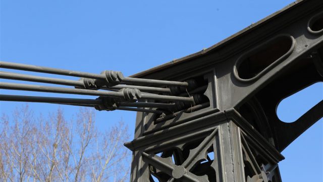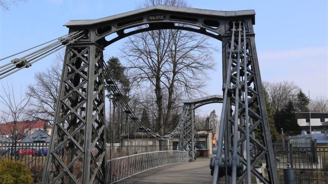 Most został oddany do użytku w 1827, zaprojektował królewski inspektor hutniczy Carl Heinrich Schottelius. Konstrukcję wykonała miejscowa Huta Małapanew. Do budowy zużyto prawie 57 ton odlewów z żeliwa i ponad 14 ton stali. To czyni go najstarszym w Europie kontynentalnej żelaznym mostem wiszącym. O rok starszym jest funkcjonujący do tej pory żelazny most wiszący Menai, który wybudowany został w Anglii w 1826 roku, lecz zawieszony jest na kamiennych pylonach.