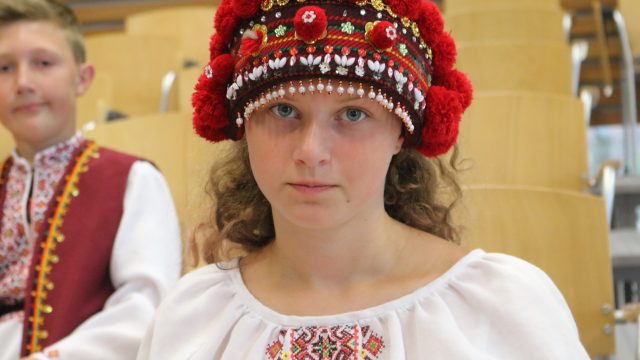 Piętnastoletnia Diana z Obwodu Iwanofrankiwskiego przyjechała na Opolszczyznę po raz piąty. Ona i jej kilkoro kolegów zaprezentowało się w pięknych huculskich strojach. Było też wspólnie śpiewanie, a na koniec pobytu pamiątkowe zdjęcie.