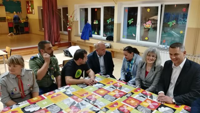 Obok marszałka, u harcerzy byli również poseł Tomasz Kostuś i Barbara Kamińska, dyrektor Biura Dialogu i Partnerstwa Obywatelskiego UMWO.