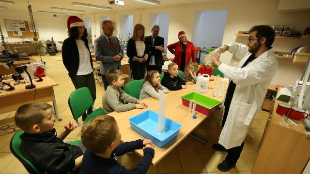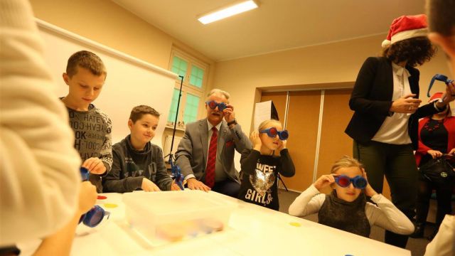 Wiele atrakcji czekało także na dzieci w Zaczarowanym Świecie Nauki i Eksperymentu w Regionalnym  Centrum Rozwoju Edukacji – RCRE zorganizował mikołajki, podczas których można był się dowiedzieć… jak powstaje śnieg. Dzieci uczestniczące w tej mikołajkowej imprezie odwiedził także ze słodkimi prezentami wicemarszałek Stanisław Rakoczy.