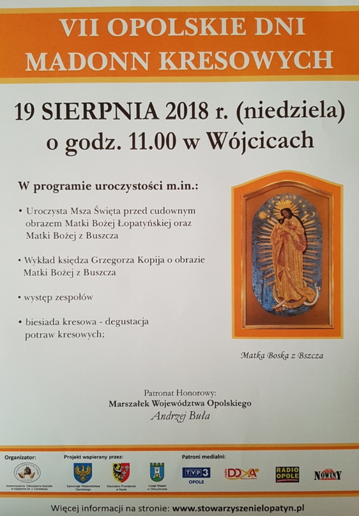 Opolskie Dni Madonn Kresowych organizują od lat społecznicy ze Stowarzyszenia Odbudowy Kościoła w Łopatynie z siedzibą w Wójcicach, na czele z paniami: Anną LudwąZofią Cichewicz. Pomysł, aby zorganizować cykliczne wojewódzkie obchody zrodził się prze laty jako owoc współpracy Kresowian z Wójcic z przedstawicielami samorządu województwa opolskiego. Inicjatywa na rzecz pogłębiania i utrwalania wiedzy o dziejach i kulturze Kresów jest bezcenna. Kresy to nie tylko urzekająca przyroda i architektura, to nie tylko bogata i ciekawa historia. To krąg ludzi, którzy potrafią pielęgnować wspomnienia i miłość do Ojczyzny.