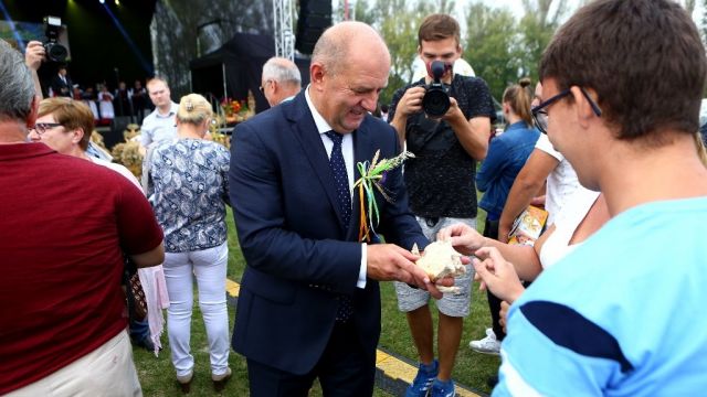 Marszałek województwa opolskiego Andrzej Buła podkreślał integracyjny charakter dorocznego spotkania środowiska rolników. – Dziś okazujemy sobie wdzięczność za pracę i pomoc w trakcie żniw. Bardzo się cieszę, że możemy się tu spotkać i mamy rekordową liczbę uczestników – mówił marszałek. Dodawał, że kiedyś rolnicy czekali na sprzęt w kolejce. – Dziś praca jest łatwiejsza. Jednak najtrudniejszym elementem pracy rolników jest troska o pogodę – i to się nie zmienia.