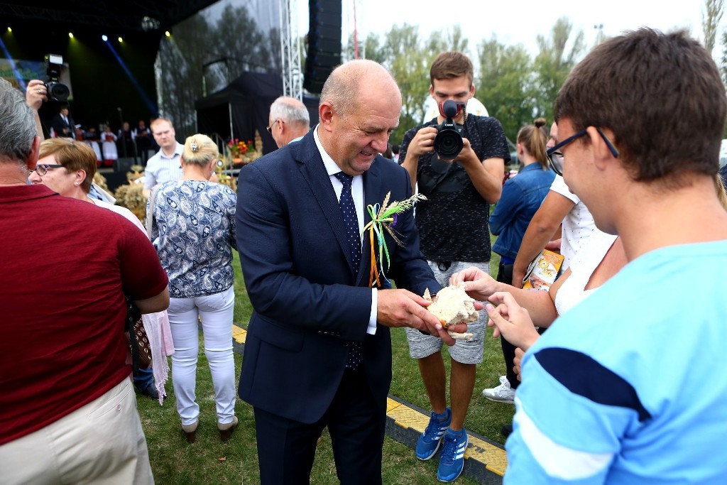 Marszałek województwa opolskiego Andrzej Buła podkreślał integracyjny charakter dorocznego spotkania środowiska rolników. – Dziś okazujemy sobie wdzięczność za pracę i pomoc w trakcie żniw. Bardzo się cieszę, że możemy się tu spotkać i mamy rekordową liczbę uczestników – mówił marszałek. Dodawał, że kiedyś rolnicy czekali na sprzęt w kolejce. – Dziś praca jest łatwiejsza. Jednak najtrudniejszym elementem pracy rolników jest troska o pogodę – i to się nie zmienia.