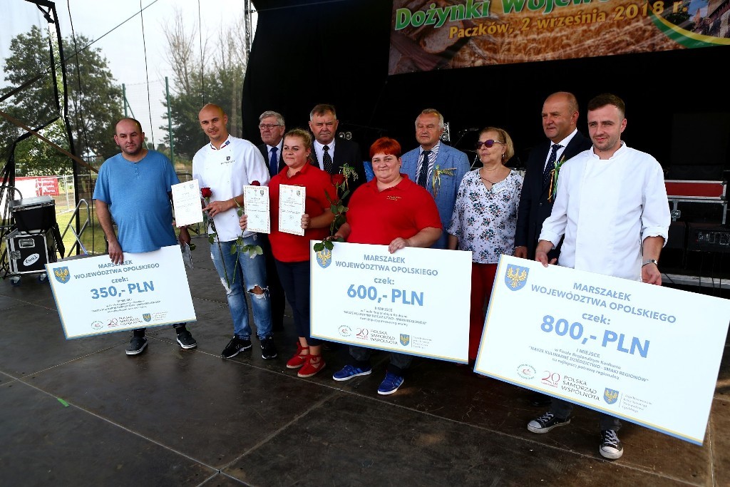 Dożynki były okazją do wręczenia Odznaki Honorowej „Za Zasługi dla Województwa Opolskiego” zasłużonym mieszkańcom gminy. Jednym z uhonorowanym był Eugeniusz Mazurkiewicz, przewodnik turystyczny z Paczkowa. – Jestem nauczycielem na emeryturze. Z przyjemnością odkrywam historię naszego miasta. Postanowiłem się zabrać za to, za co nie chcieli zabrać się historycy. Chcę podawać rzetelne i prawdziwe informacje, porządkuję je. Napisałem książeczkę o kacie paczkowskim, opracowana jest druga publikacja o miejscowych legendach – dodaje. Drugą odznakę otrzymał Andrzej Budzik.