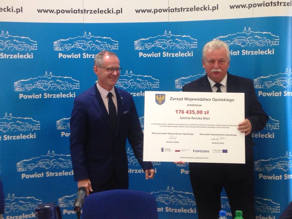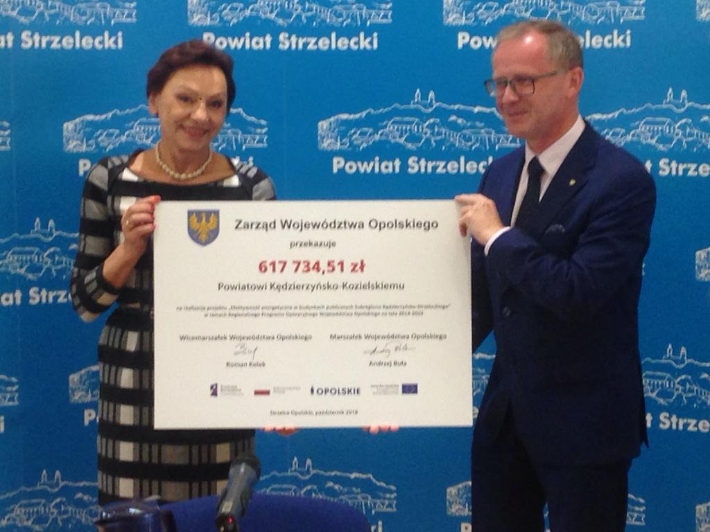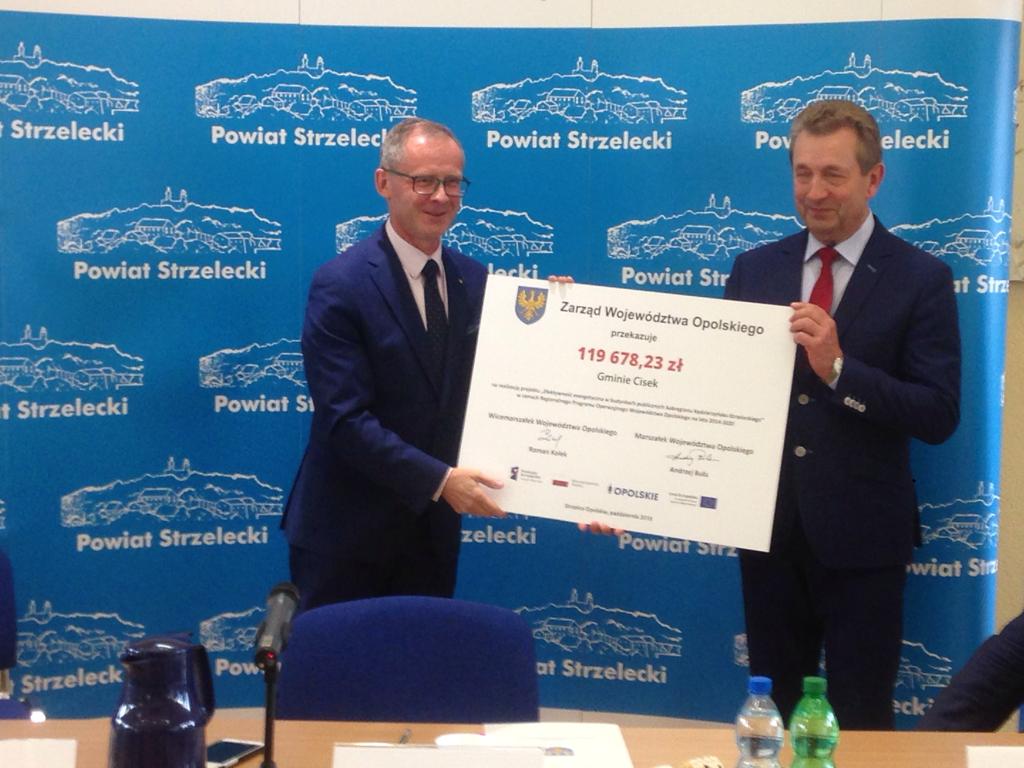 Zespół Szkół Miejskich nr 1 i Publiczne Gimnazjum nr 1 w Kędzierzynie-Koźlu. Poczta-Policja w Cisku, Urząd Gminy w Polskiej Cerekwi, Zespół Szkolno-Przedszkolny w Reńskiej Wsi, Publiczna Szkoła Podstawowa w Sieronowicach, Publiczne Przedszkole nr 4 oraz Publiczne Przedszkole nr 9 w Strzelcach Opolskich. Termomodernizacja hali sportowej w Zawadzkiem, termomodernizacja i przebudowa świetlicy wiejskiej z zapleczem LZS w Piotrówce, termomodernizacja i wymiana źródła ciepła w budynku Przedszkola w Raszowej, termomodernizacja budynku Domu Kultury w Trawnikach. Wymiana źródeł ciepła oraz stolarki okiennej w Zespole Szkół w Solarni. Termomodernizacją zostanie objęty również budynek Zespołu Szkół Technicznych i Ogólnokształcących w Kędzierzynie-Koźlu oraz DPS w Strzelcach Opolskich.