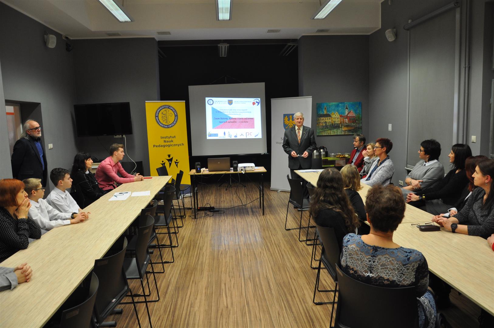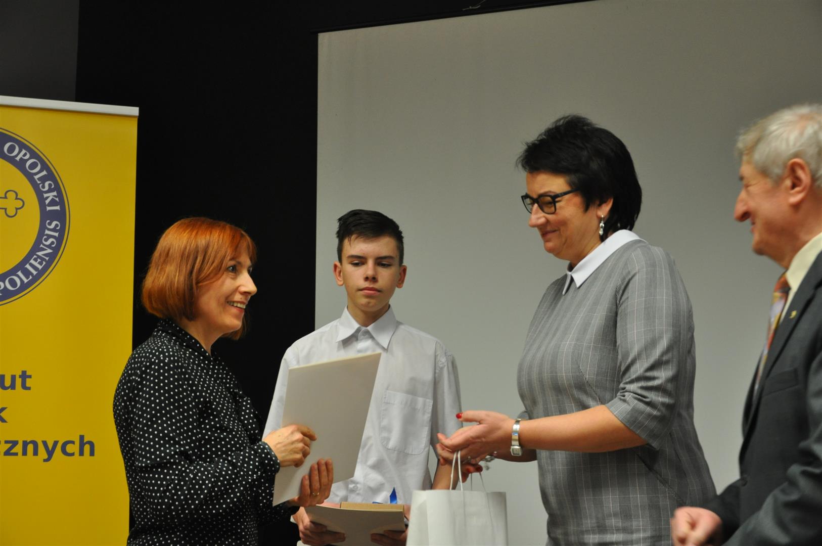 Zwycięzcy tegorocznej edycji konkursu otrzymali dyplomy Marszałka Województwa Opolskiego oraz cenne nagrody rzeczowe z rąk Agnieszki Okupniak, dyrektorki Departamentu Współpracy z Zagranicą i Promocji Regionu oraz Moniki Jurek, dyrektorki Departamentu Edukacji i Rynku Pracy Urzędu Marszałkowskiego Województwa Opolskiego. Spotkanie prowadził profesor zw. dr hab. Zenon Jasiński.