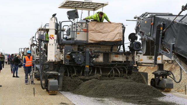 Co warto podkreślić, to właśnie w pobliżu budowanej drogi znajdują się jedne z największych zakładów w Europie produkujących cement, czyli Górażdże Heidelberg Cement. Kolejnym argumentem przemawiającym za takim wykonaniem tej drogi są niższe koszty jej wykonania w porównaniu z drogami asfaltowymi. Marszałek województwa opolskiego Andrzej Buła podkreśla, że budowana za 41 milionów złotych droga to jedna z najnowocześniejszych tego typu inwestycji prowadzonych obecnie w Europie. – Sam z ciekawością przyglądam się temu, jak budowana jest ta droga. Jesteśmy jedynym województwem w Polsce, które zdecydowało się na budowę drogi wojewódzkiej w tej technologii. Niesamowite zaangażowanie dwóch firm, DROG-BUD-u i BUDPOL-u, daje gwarancję nie tylko dotrzymania terminów, ale co najważniejsze – jakości, która jest dla mnie bardzo ważna. Obecnie pracują tutaj maszyny, która budują autostrady. Przypomnę, że plany budowy tej drogi sięgają 11 lat. Teraz ten pomysł jest realizowany – dodaje marszałek .