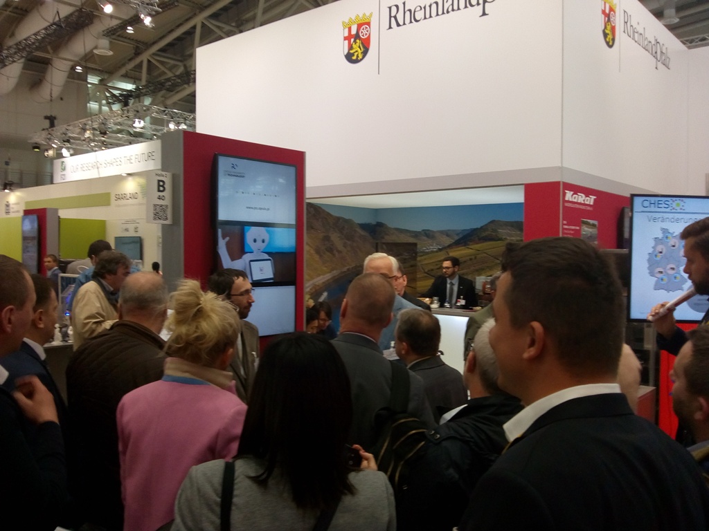 Pracownicy naukowi Politechniki Opolskiej, dr inż. Aleksandra Kawala-Janik, dr inż. Michał Podpora oraz dr inż. Arkadiusz Gardecki zaprezentowali badania dotyczące analizy danych biomedycznych, których celem jest poprawa nieinwazyjnych metod interakcji „mózg-komputer”. Badania prowadzone przez opolskich naukowców we współpracy z Oddziałem Neurochirurgii Uniwersyteckiego Szpitala Klinicznego pozwalają na coraz dokładniejsze diagnozowanie zaburzeń pracy ludzkiego mózgu. Drugi z obszarów badań, zaprezentowanych w trakcie targów, dotyczył dokładnego rozpoznawania twarzy przez roboty humanoidalne. Naukowcy z Politechniki Opolskiej rozwijają innowacyjną koncepcję interakcji na linii człowiek – maszyna, a celem prowadzonych prac rozwojowych jest stworzenie „prawdziwie inteligentnego” humanoidalnego asystenta człowieka. Podczas wszystkich dni targowych prezentowane przez Politechnikę projekty cieszyły się dużym zainteresowaniem zwiedzających. Z osiągnięciami opolskich naukowców zapoznała się również Daniela Schmitt, Sekretarz Stanu w Ministerstwie Gospodarki Nadrenii-Palatynatu, która wizytując nasze stoisko, wielokrotnie podkreślała wagę współpracy naszych uczelni i realizacji wspólnych projektów.