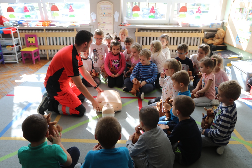 Duży fantom, a dla dzieci pluszowe zabawki. Tak wygląda pierwsza lekcja resuscytacji, czyli prawidłowego udzielenia pierwszej pomocy przedmedycznej. – Dla nas priorytetem jest nauczenie dzieci, na jaki numer mają zadzwonić i jakich pytań powinny się spodziewać. Od tego zależy, czy ratownicy szybko przyjadą do poszkodowanego. Nie chcemy od dziecka wymagać szczegółów, ale żeby powiedziało, w jakim mieście i przy jakiej ulicy jest mieszkanie, w którym się znajduje. Wtedy ratownik zadysponuje odpowiednie służby. Uczymy też udzielania pierwszej pomocy. Odpowiednia postawa przedszkolaka może uratować życie – mówi młodszy kapitan Dariusz Pryga, zastępca dowódcy JRG w Nysie.