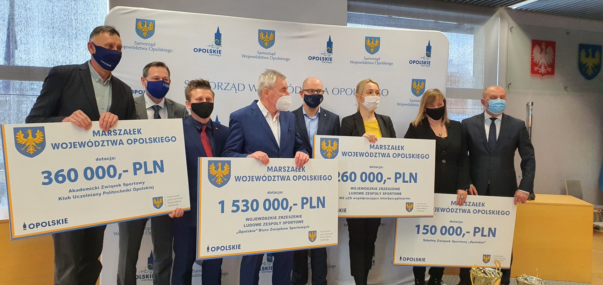 - Wojewódzkie Zrzeszenie Ludowe Zespoły Sportowe na zadanie pn. „Opolskie Biuro Związków Sportowych” – 1 530 000 zł (dotacja w 2020 r. 1 230 000 zł ) ;