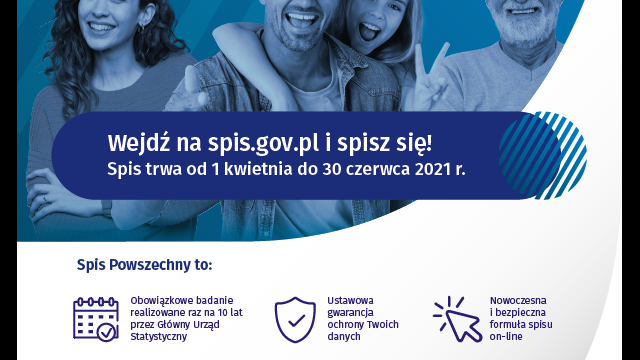 Od 1 kwietnia br. trwa Narodowy Powszechny Ludności i Mieszkań 2021. Spisu można dokonać na stronie https://SPIS.GOV.PL . Można też skorzystać z infolinii i wypełnić obowiązek spisowy przez spis przez telefon – numer telefonu to 22 279 99 99.