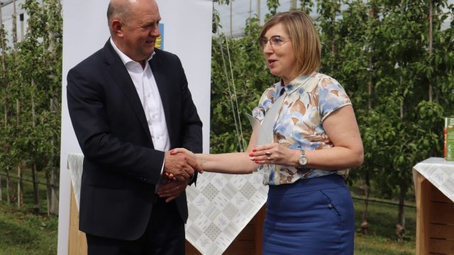 Gospodarz tego spotkania – Sady Lech Grudynia – to kolejny laureat, tym razem w kategorii „mój mały biznes”. Tym, co podbiło serca jurorów, były jabłka z Grudyni, dostępne przez 24 godziny na dobę w innowacyjnym i bezpiecznym w czasie pandemii jabłkomacie. Maria Lechoszest z Sadów mówi, że pomysł się spodobał. – Początkowo sami zastanawialiśmy się, jak to będzie wyglądało. A teraz ludzie przyjeżdżają i w dzień, i w nocy. Najwięcej przed i po pracy, a weekendy są po prostu szalone – śmieje się. Dodaje, że firma od września zamierza powiększyć tę ofertę.