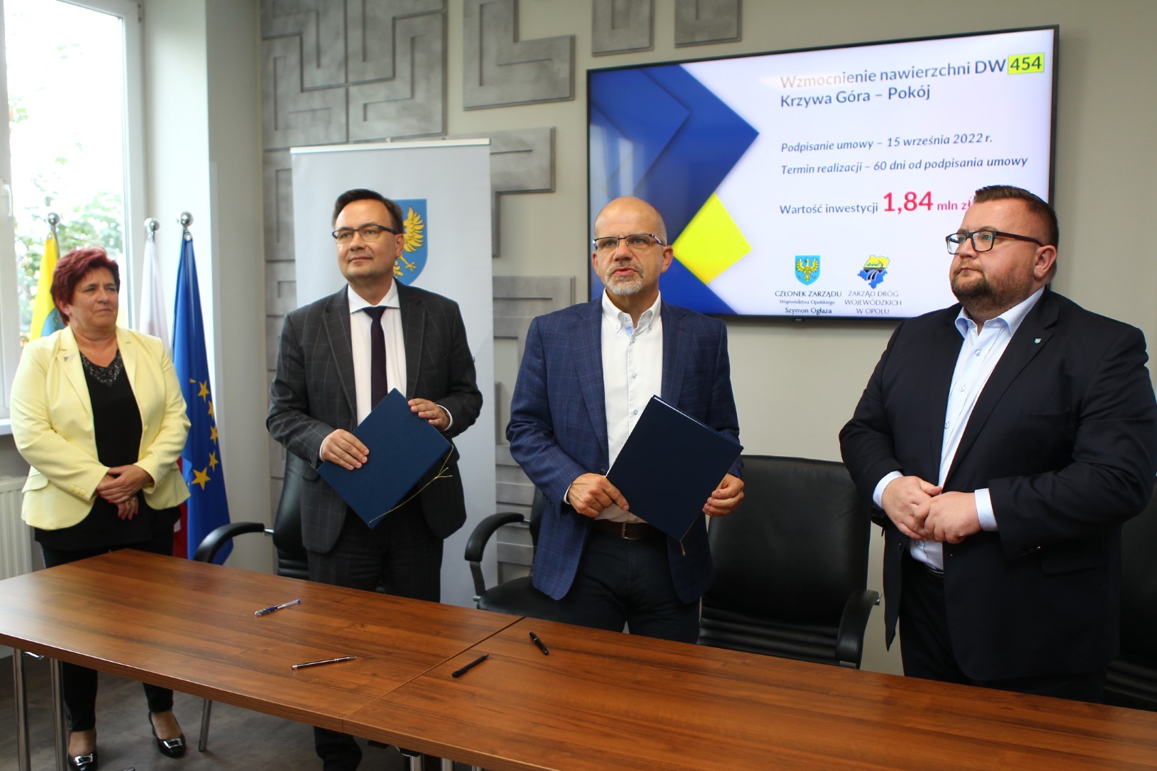 Jeszcze w tym roku ponad dwa kilometry drogi wojewódzkiej nr 454 na odcinku z Krzywej Góry do Pokoju będą miały nową nawierzchnię. Dziś Zarząd Dróg Wojewódzkich podpisał umowę z wykonawcą prac.