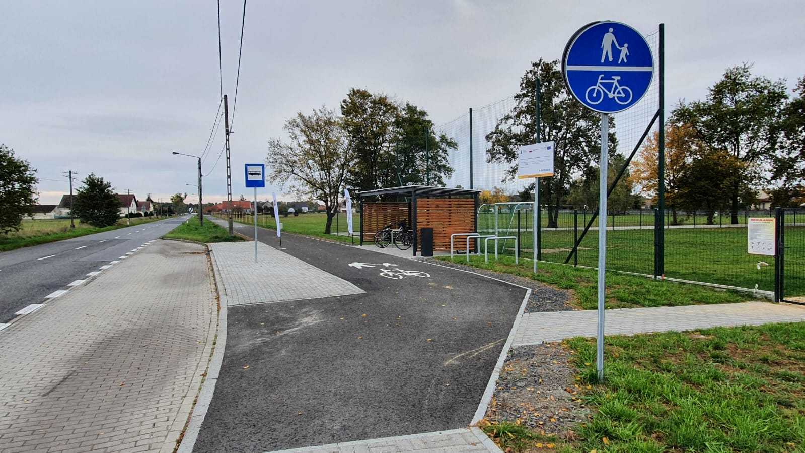 W ramach unijnego projektu wybudowano asfaltową ścieżkę pieszo-rowerową wraz z oświetleniem, a także parking bike&ride. Fragment ścieżki w sąsiedztwie starorzecza, w celu ochrony tego obszaru, wykonano z nawierzchni mineralnej – przepuszczalnej – ze względów przyrodniczych, jak i krajobrazowych. Wzdłuż ścieżki zostały także posadzone drzewa.