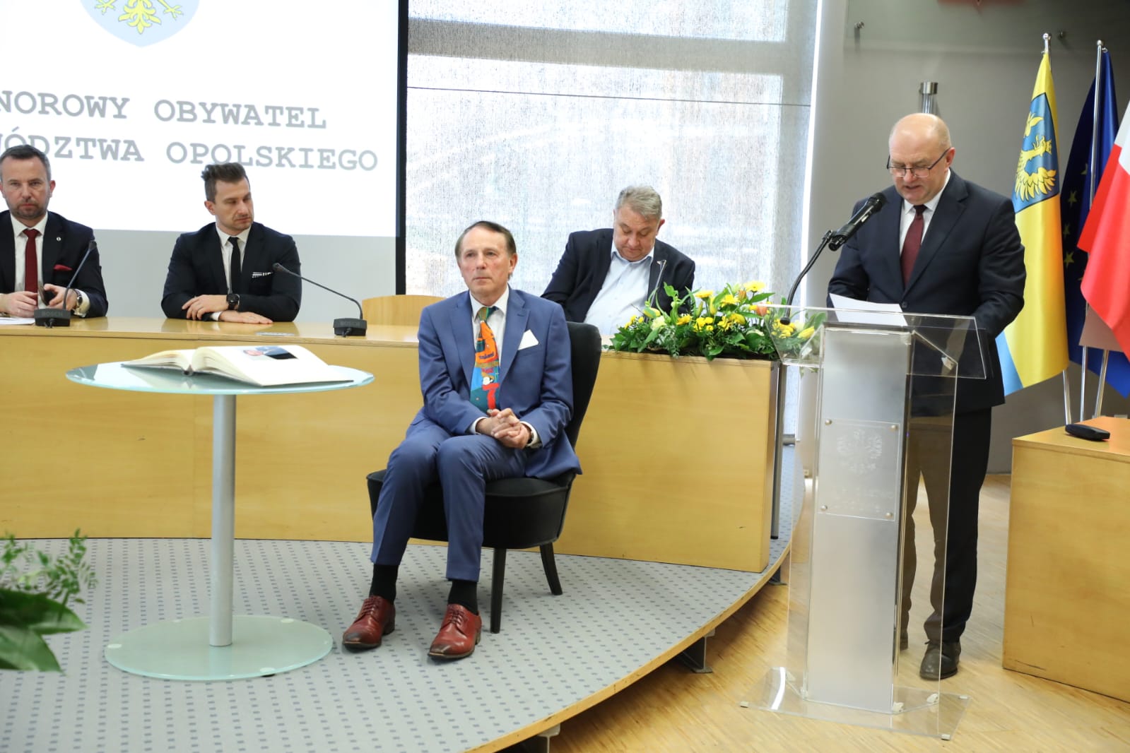– To nasze podziękowanie, radnych i całej wspólnoty regionalnej, za całokształt pracy Pana Profesora dla Opolszczyzny. Dla naszej nauki, akademickości, wielokulturowości, w tym szczególnie za rozwój Uniwersytetu Opolskiego, zbudowanie jego materialnego kształtu, wysokiego prestiżu oraz wyeksponowanie w swojej twórczości, dziedzictwa kresowej natywności i ocalenie od zapomnienia najcenniejszych wartości Kresów – mówił w laudacji inicjator nadania tego tytułu, marszałek Andrzej Buła. – To wybitny naukowiec, historyk, biografista, eseista, wizjoner, osobowość wielkiego formatu. Człowiek niezwykle pracowity, inteligentny, mądry i niestrudzony propagator aktywnego, szerokiego i otwartego uprawiania nauki, historii, uczestniczenia w życiu społecznym, tworzenia wartości oraz trwałych śladów swojej działalności. Samej bibliografii prac szacuje się na ponad tysiąc pozycji, a do tego dochodzą bardzo liczne wywiady, wykłady, referaty, odczyty, spotkania autorskie, filmy dokumentalne. Pan Profesor wykształcił setki studentów, wypromował kilkunastu doktorów. Był przez 4 kadencje rektorem Uniwersytetu Opolskiego, w latach 1996 – 2016, i to były wspaniałe lata dla rozwoju kariery Pana Profesora i kluczowe dla rozwoju i otwarcia Uniwersytetu na akademickie środowisko oraz mapę kraju i Europy budujące prestiż i tożsamość regionu. – mówił dalej marszałek.