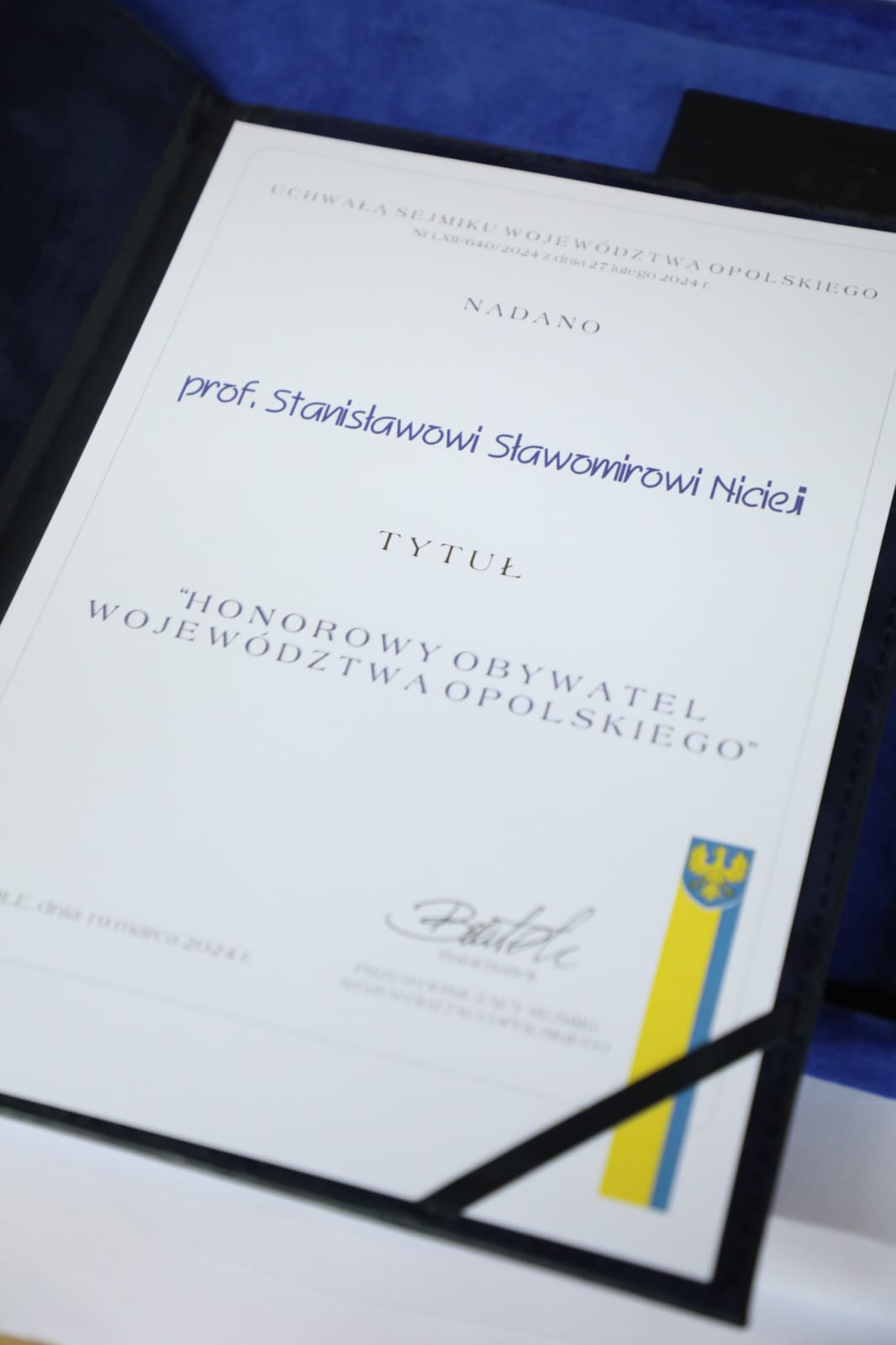 Profesor Stanisław Sławomir Nicieja został Honorowym Obywatelem Województwa Opolskiego. Uroczystość nadania tego tytułu uroczyście zwieńczyła kadencję sejmiku województwa. Ten zaszczyt przyznano Profesorowi w roku jubileuszowym – 50–lecia pracy naukowej, wydania w tym roku 20. tomu „Kresowej Atlantydy” i 30–lecia Uniwersytetu Opolskiego, którego był przez lata rektorem.