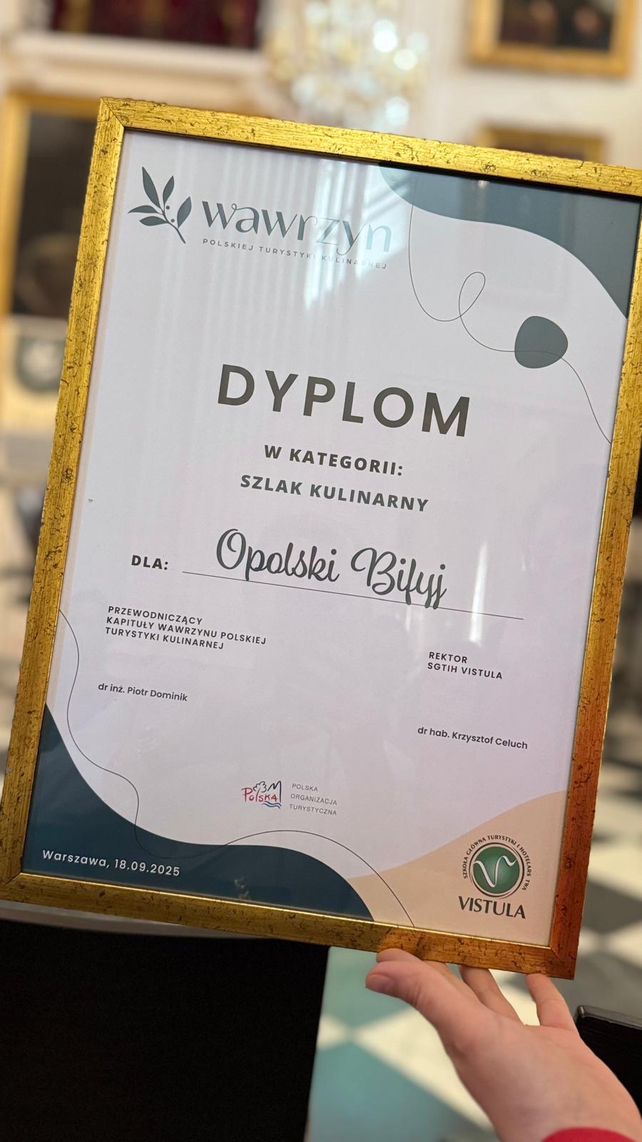 Z ogromną radością informujemy, że Szlak Kulinarny Opolski Bifyj zdobył pierwsze miejsce w ogólnopolskim konkursie Wawrzyn Polskiej Turystyki Kulinarnej w kategorii „Szlak kulinarny”. Nagrodę w imieniu Samorządu Województwa Opolskiego odebrał podczas uroczystej Gali w Warszawie członek zarządu województwa Robert Węgrzyn wraz z opolską delegacją.