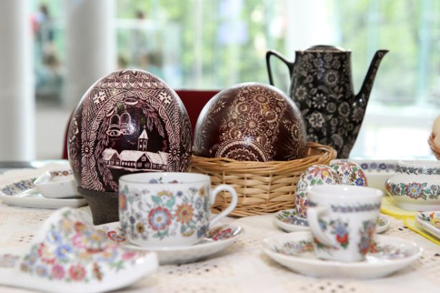 Obok występów scenicznych różne przejawy twórczości plastycznej można było oglądać w holu Filharmonii – malowane olejem krajobrazy, portrety, śląskie kroszonki, hafty, zdobioną porcelanę.